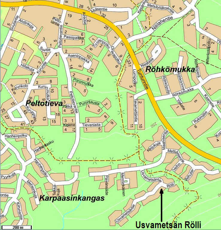 Usvametsän Rölli sijaitsee Äkäslompolossa Maahisen alueella usvametsäntien ja röllin risteyksessä, josta matkaa